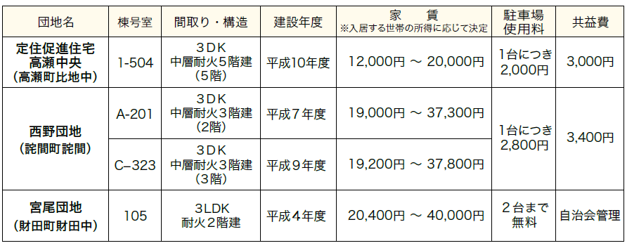 ※定住促進住宅高瀬中央は、市外の人でも申し込み可能。