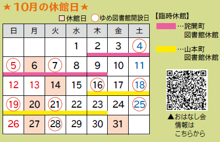 くらし 図書館ニュース 18/31 前の記事 次の記事 発行日 : 2025年10月01日 自治体名 : 香川県三豊市 広報紙名 : 広報みとよ 令和7年10月号 ■みとよゆめ図書館の開設時間が変わりました 開設時間:午前10時~午後5時 場所:ゆめタウン三豊 問い合わせ:生涯学習課 【電話】73-3135 Tweet シェアする 10月のお知らせ(イベント) マリンウェーブ情報