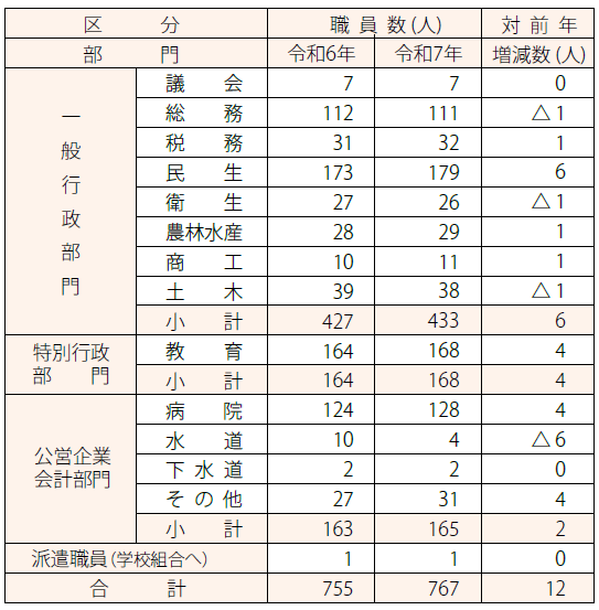 (注)職員数は、令和6年4月1日の現在の普通会計の人数です。