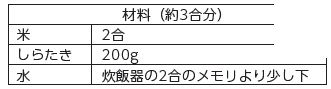 ・しらたきは吸水しないので、水加減はお米を炊くときと同じ水量で大丈夫です。