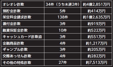 これまでは高齢者を中心に「還付金詐欺」や「オレオレ詐欺」などの被害が発生していましたが、被害者の年齢層が変わってきています。「オレオレ詐欺」や「架空料金請求詐欺」の被害者の年齢層が高齢者以外に20代や30代の若い世代にも広がっています。幅広い年代での被害が増加していることから、特殊詐欺の手口が巧妙化しており、犯人側と接触してしまえば、誰もがだまされる恐れがあるということを意味します。