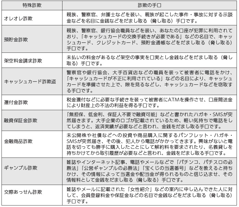 ◆特殊詐欺の手口は日々変わっていきます。犯罪被害に遭わないために、手口と対策を知ろう!