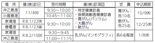 ・天候などにより、各種健(検)診健診を中止する場合があります。