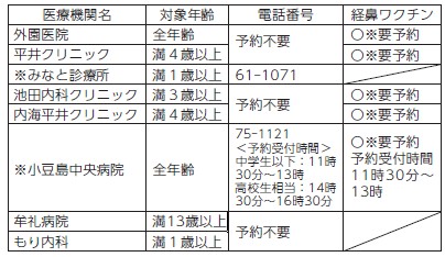 小豆郡内の接種可能医療機関
