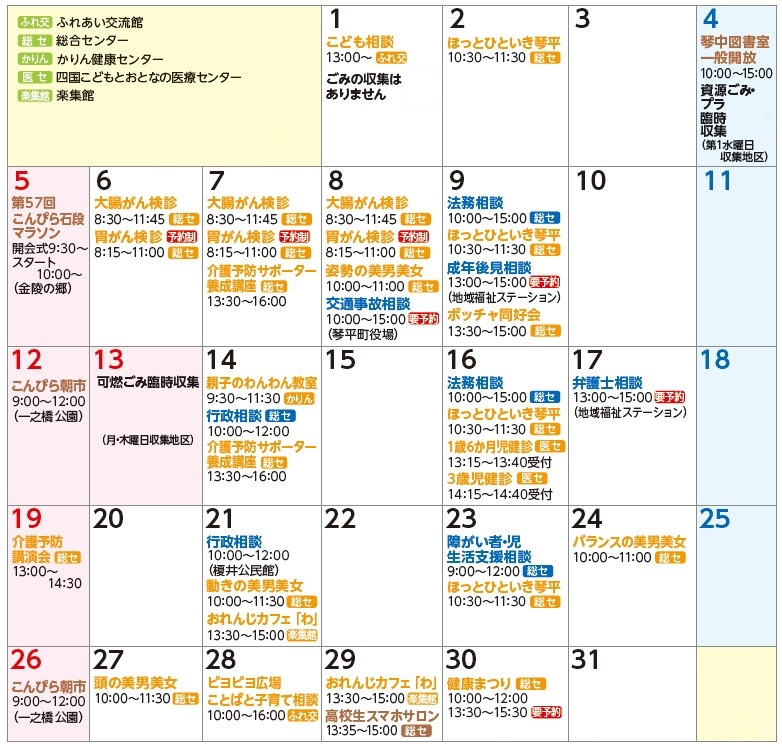 くらし 2025 OCTOBER 10 こんぴらカレンダー 51/52 前の記事 次の記事 記事を読み上げる 発行日 : 2025年10月01日 自治体名 : 香川県琴平町 広報紙名 : 広報ことひら 2025年10月号 行事について:行事の色が青→相談、オレンジ→福祉・保健関係、茶→その他 Tweet シェアする 消費者ホットライン その他のお知らせ(広報ことひら 2025年10月号)