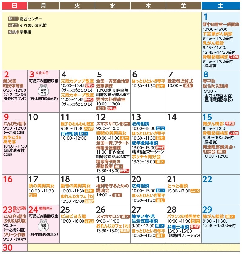 くらし 2025 NOVEMBER 11 こんぴらカレンダー 54/55 前の記事 次の記事 記事を読み上げる 発行日 : 2025年11月01日 自治体名 : 香川県琴平町 広報紙名 : 広報ことひら 2025年11月号 行事について:行事の色が青→相談、オレンジ→福祉・保健関係、茶→その他 Tweet シェアする 消費者ホットライン その他のお知らせ(広報ことひら 2025年11月号)