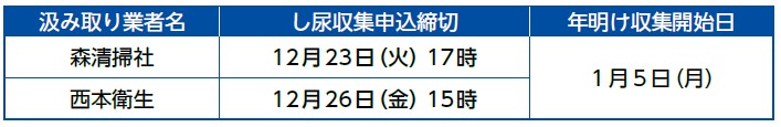 ※汲み取り業者により年末収集申込み締め切り日時が違いますので、ご注意ください。