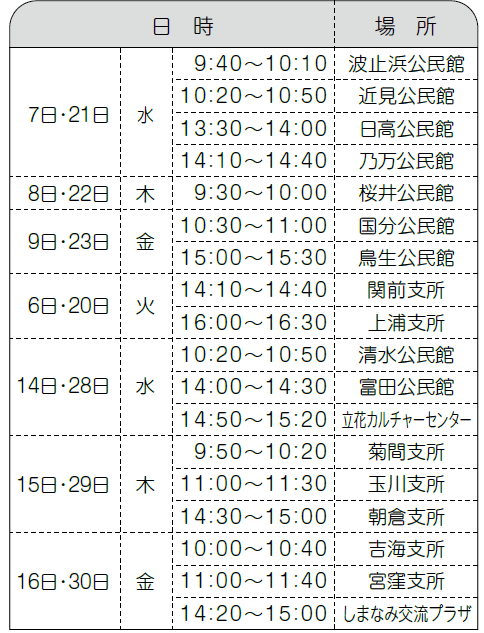 ・波方図書館【電話】0898-41-5888【FAX】0898-41-5889