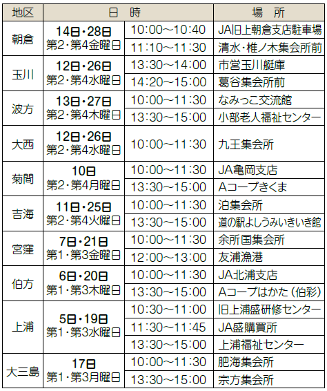 ◆11月の移動市役所訪問スケジュール(祝日休止)