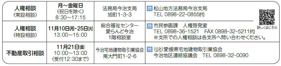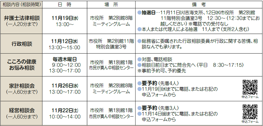 ※各相談会は中止になる場合があります。11月4日(火)以降に問い合わせください。