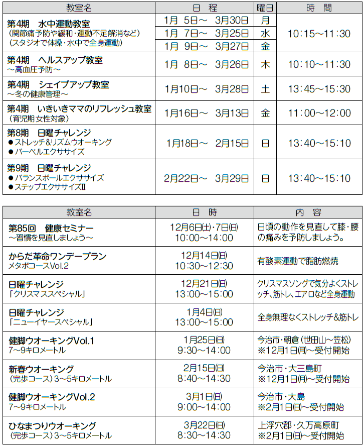 ※全て事前申し込みが必要です。詳しくは問い合わせまたは各公民館に設置している冊子「健康づくり事業」で確認ください。