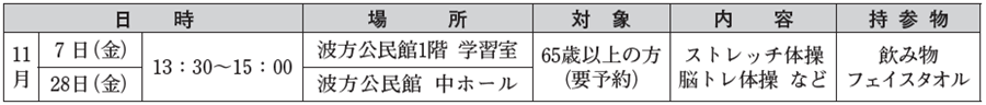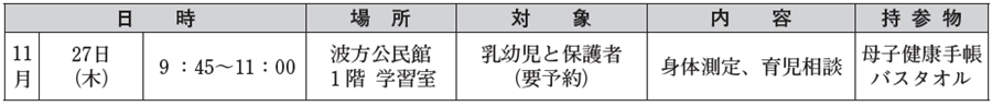 11月は、4日(火)、18日(火)が終日、14日(金)、28日(金)が午後のみとなっております。