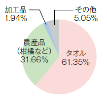 令和6年度では、寄附金額の6割をタオル製品で占めています。2番目は農産品で、紅まどんなを代表する柑橘類が人気でした。