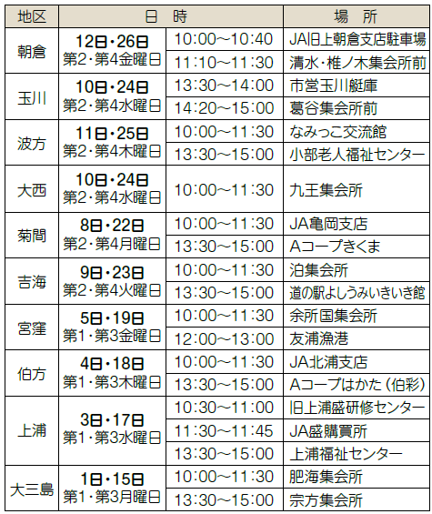 ◆12月の移動市役所訪問スケジュール(祝日休止)