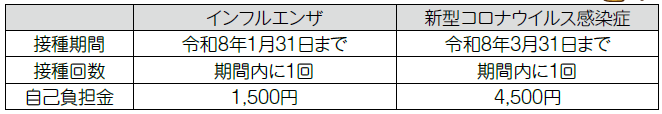 ◆令和7年度高齢者のインフルエンザ・新型コロナウイルス感染症予防接種