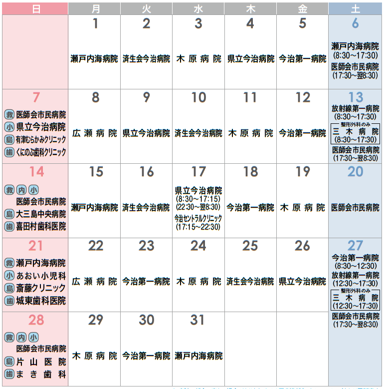 ・病院の都合で変わる場合があります。えひめ医療情報ネットホームページまたは電話案内(【電話】0898-32-3300)でご確認ください。