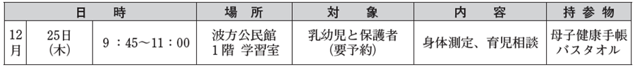 申込・問合先:波方支所住民サービス課 保健師まで