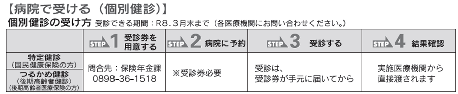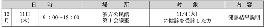 波方地区の集団健(検)診は今年度は終了しましたが、個別健診は実施しています。