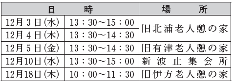 次の日程で健康相談・血圧測定を行いますので、お気軽にお越しください。