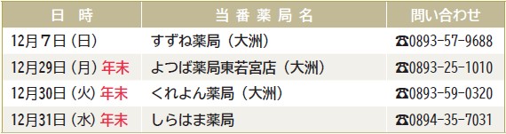 ※記載のない休日は当番医療機関が院内でお薬を処方します。
