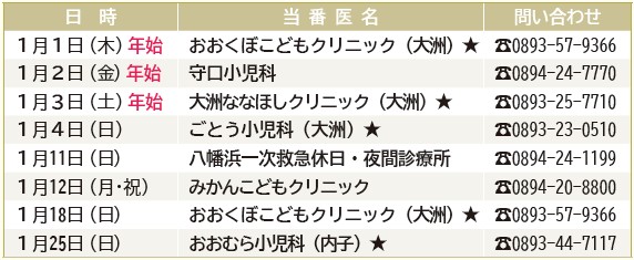 2月以降の当番医は市HPをご覧ください。