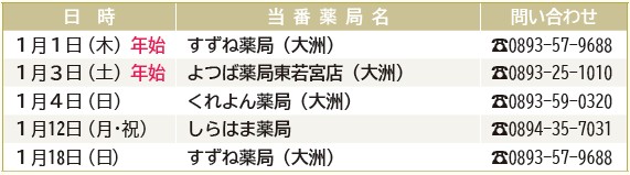 ※記載のない休日は当番医療機関が院内でお薬を処方します。