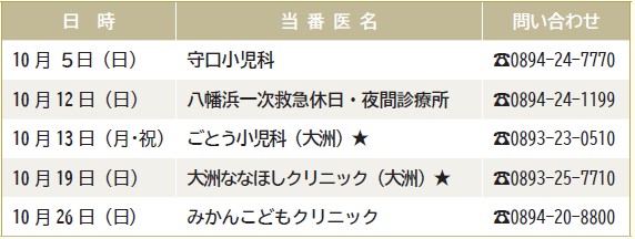 11月以降の当番医は市HPをご覧ください。