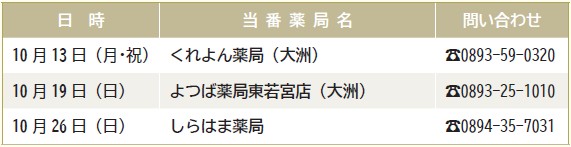 ※記載のない休日は当番医療機関が院内でお薬を処方します。
