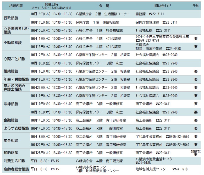 くらし 無料相談のご案内 38/46 前の記事 次の記事 発行日 : 2025年10月01日 自治体名 : 愛媛県八幡浜市 広報紙名 : 広報やわたはま 2025年10月号 日々のくらしで困っていることはありませんか? Tweet シェアする 図書館だより マイナンバー休日窓口