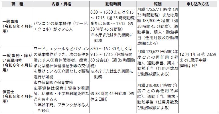 ※上記以外の職種(令和8年4月任用)も募集中。詳細はHPをご確認ください。