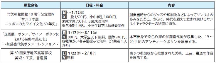 1月の休館日:1日(木)、13日(火)、19日(月)、26日(月)