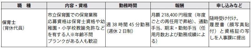 しごと 会計年度任用職員の募集 22/40 前の記事 次の記事 発行日 : 2025年06月01日 自治体名 : 愛媛県新居浜市 広報紙名 : 市政だより「にいはま」 令和7年(2025年)6月号 詳細は人事課HP 問い合わせ・申込:人事課 【電話】65-1213 詳細は社会教育課HP 問い合わせ・申込:社会教育課 【電話】65-1300 Tweet シェアする 6月 おしらせ[募集] 令和7年度 全国統一防火標語・危険物安全週間
