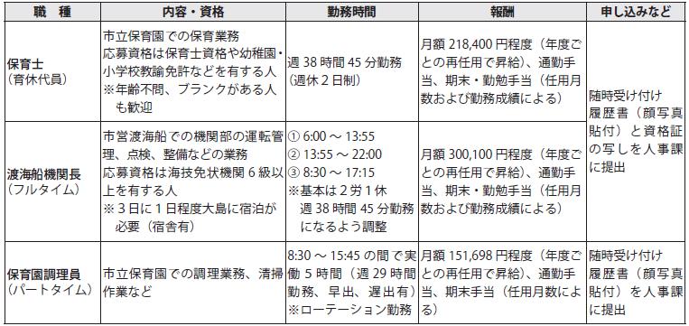 しごと 会計年度任用職員の募集(1) 18/41 前の記事 次の記事 発行日 : 2025年11月01日 自治体名 : 愛媛県新居浜市 広報紙名 : 市政だより「にいはま」 令和7年(2025年)11月号 詳細は人事課HP 問合せ・申込み:人事課 【電話】65-1213 Tweet シェアする 11月 おしらせ[募集] 消費生活センター通信