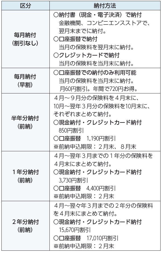 ▽国民年金保険料の納付方法と割引制度