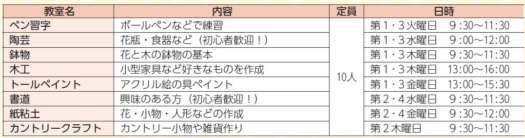 受講希望者は各施設へ直接ご来館ください(電話申し込み不可)。受講料は無料、材料費は個人負担です。