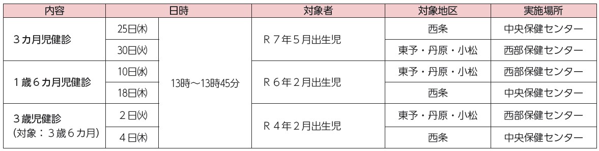 ※体調不良の方や当日都合の悪い方は日程変更が可能です。中央保健センター(【電話】0897-52-1215)へご連絡ください