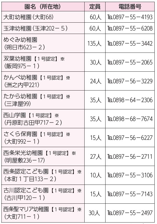 対象:市内在住の幼児(ひまわり幼稚園は通園区域あり)