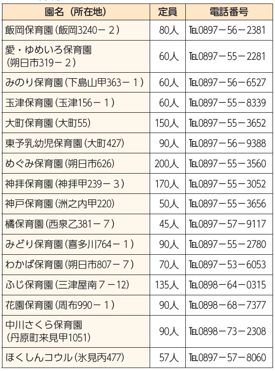 ・延長保育や土曜保育など、保育所(園)等の詳細は市ホームページをご覧ください。