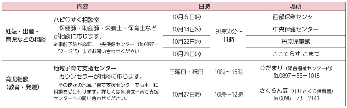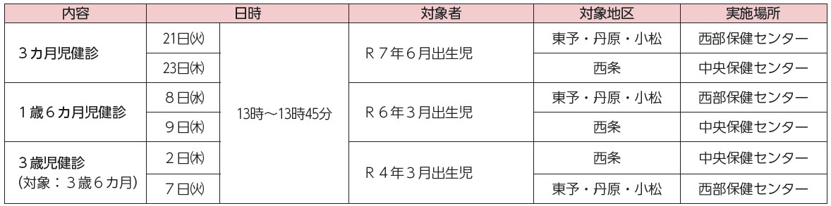 ※体調不良の方や当日都合の悪い方は日程変更が可能です。中央保健センター(【電話】0897-52-1215)へご連絡ください