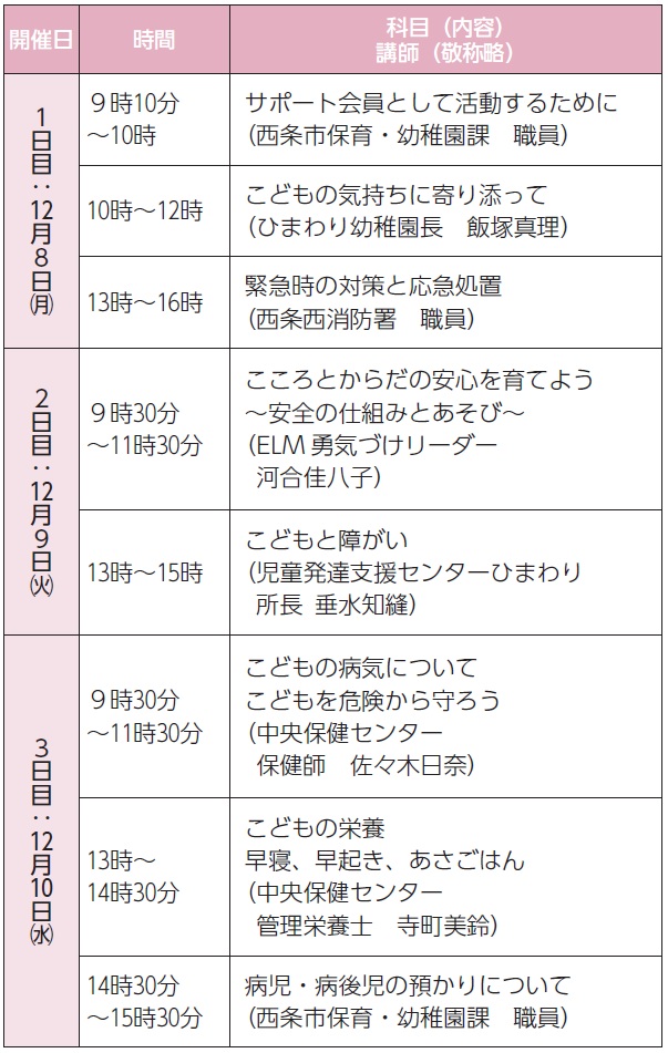 申込先:西条ファミリー・サポート・センター(市庁舎新館2階 保育・幼稚園課内)