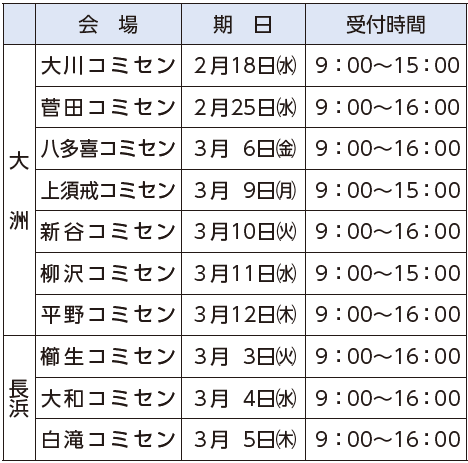 集中相談日:2月26日(木)、27日(金)、3月2日(月)