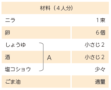 ニラはβカロテンが豊富で、その含有量は野菜の中でもトップクラスです。βカロテンは体内でビタミンAに変換され、目や皮膚の健康に働きます。加えて抗酸化作用を持つビタミンC、Eなどの栄養素が豊富に含まれているため、老化防止や美肌への効果も期待できます。