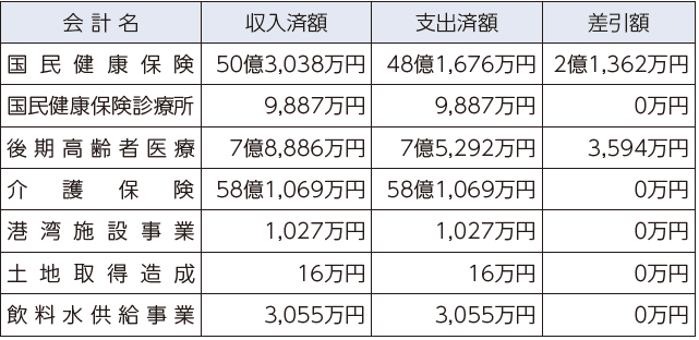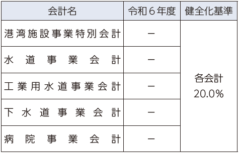 また、公営企業ごとの資金不足額が事業規模に対してどのくらいの割合になるかを示す資金不足比率では、すべての会計で資金不足はありませんでした。引き続き、健全な財政運営に努めます。