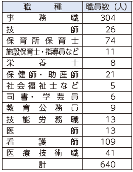 (注)職員数は一般職に属する職員数であり、地方公務員の身分を保有する休職者などを含み、会計年度任用職員を除いています。