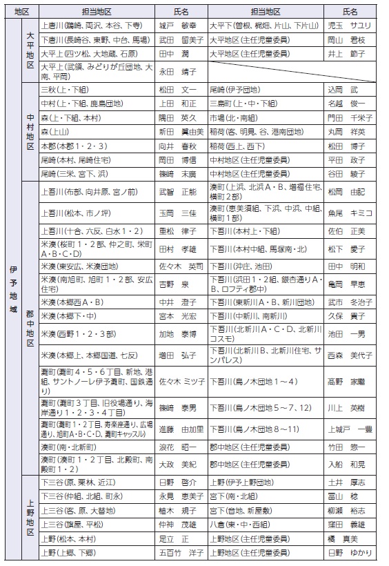 民生委員・児童委員はそれぞれの地域において、住民の最も身近な相談相手・支援者となる存在です。相談内容などの秘密を守ることは法律で義務付けられていますので、個人情報が漏れる心配はありません。相談内容は、保健や医療、福祉、介護、子育て、生活環境など多岐にわたります。一人で悩まずにお気軽にご相談ください。連絡先は、伊予市社会福祉協議会、または福祉課へお問い合わせください。