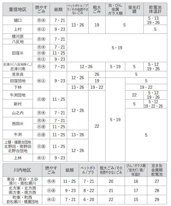 地方祭により一部地域の収集日に変更あり