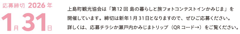 イベント 観光協会だより 11/36 前の記事 次の記事 発行日 : 2026年01月01日 自治体名 : 愛媛県上島町 広報紙名 : 広報かみじま 2026年1月号 ■第12回 島の暮らしと旅フォトコンテストinかみじま ※QRコードは本紙をご覧ください。 Tweet シェアする ALTコーナー LETTERS FROM SCHOOL