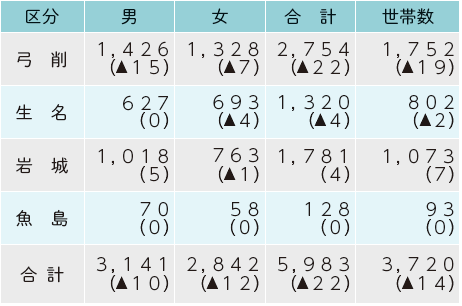 くらし 人口の動き 28/33 前の記事 次の記事 発行日 : 2025年10月01日 自治体名 : 愛媛県上島町 広報紙名 : 広報かみじま 2025年10月号 令和7年8月31日現在 ※( )は前月比です。 ◆人口の増減 転入等:26人 転出等:36人 出生:1人 死亡:13人 Tweet シェアする 戸籍だより HAPPY BIRTHDAY 1歳のお誕生日おめでとう