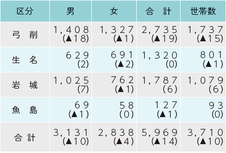 くらし 人口の動き 32/36 前の記事 次の記事 発行日 : 2025年11月01日 自治体名 : 愛媛県上島町 広報紙名 : 広報かみじま 2025年11月号 令和7年9月30日現在 ※( )は前月比です。 ◆人口の増減 転入等:22人 転出等:25人 出生:0人 死亡:11人 Tweet シェアする HAPPY BIRTHDAY 1歳のお誕生日おめでとう 上島町11月行事カレンダー・潮汐表