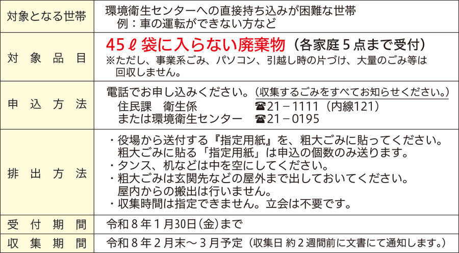 ※対象者以外の方は環境衛生センターへ直接搬入をお願いします。(無料)